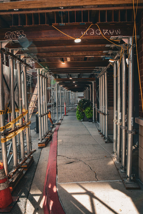 Explore our recent projects featuring electric swing stages, sidewalk protection canopies, and custom pipe scaffolding systems—each built to meet strict OSHA and SAIA safety standards.